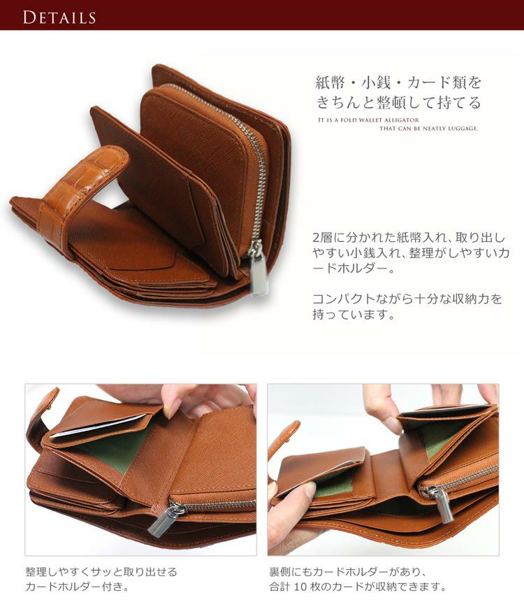| 素材 | 表側:クロコダイル(本革) 内装:牛革、生地 |