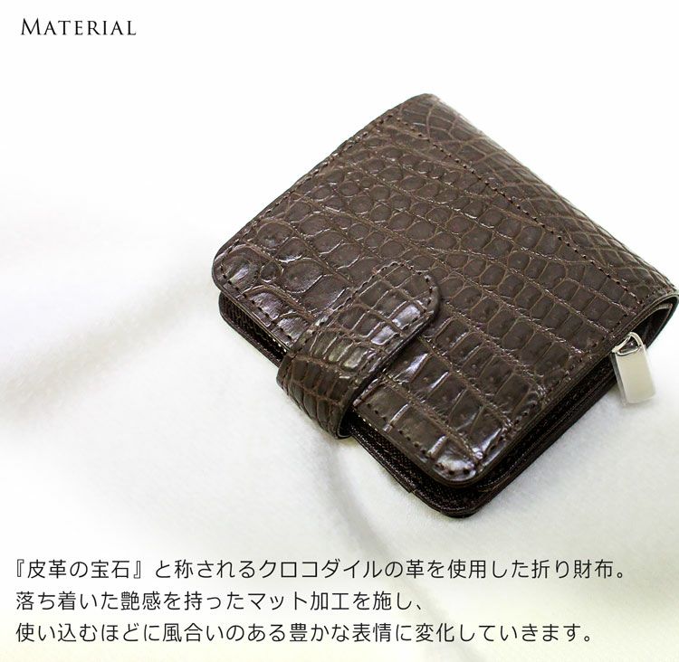 『皮革の宝石』と称される高級皮革のクロコダイルを使用した折り財布。