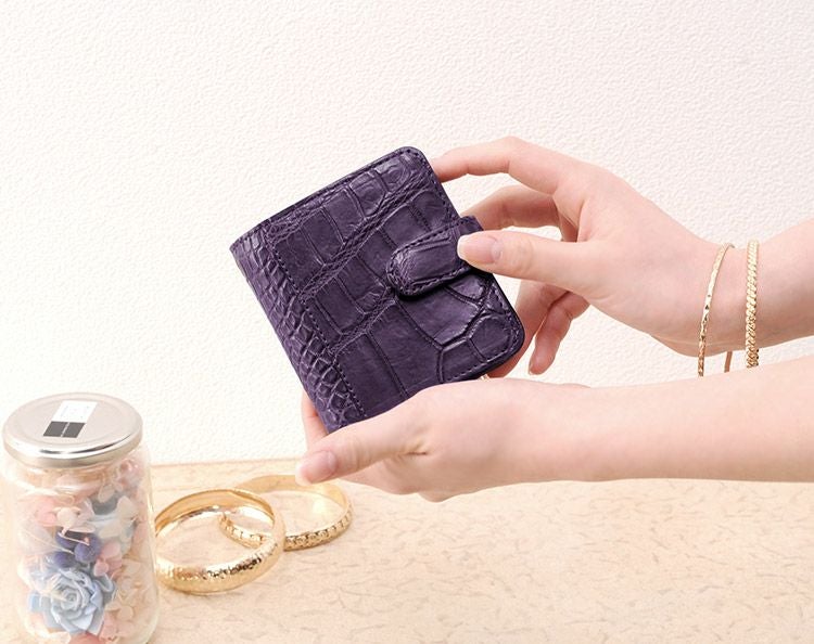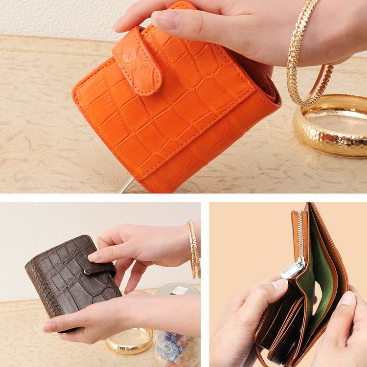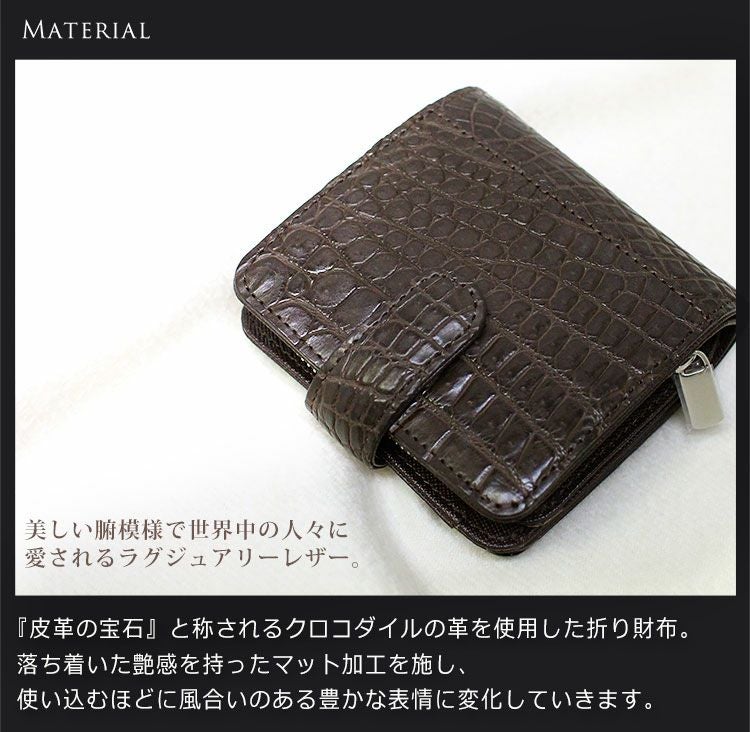 『皮革の宝石』と称される高級皮革のクロコダイルを使用した折り財布。