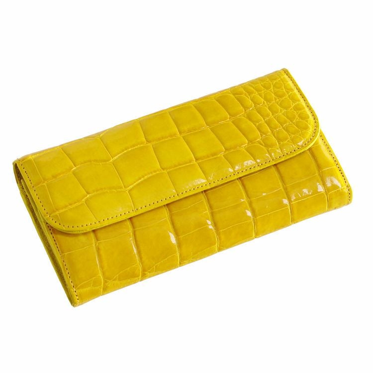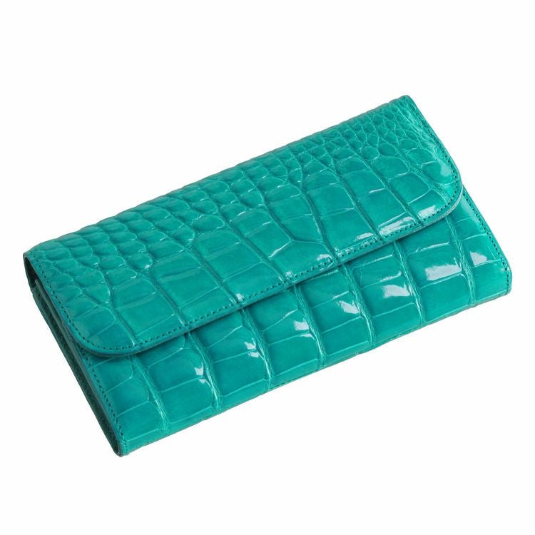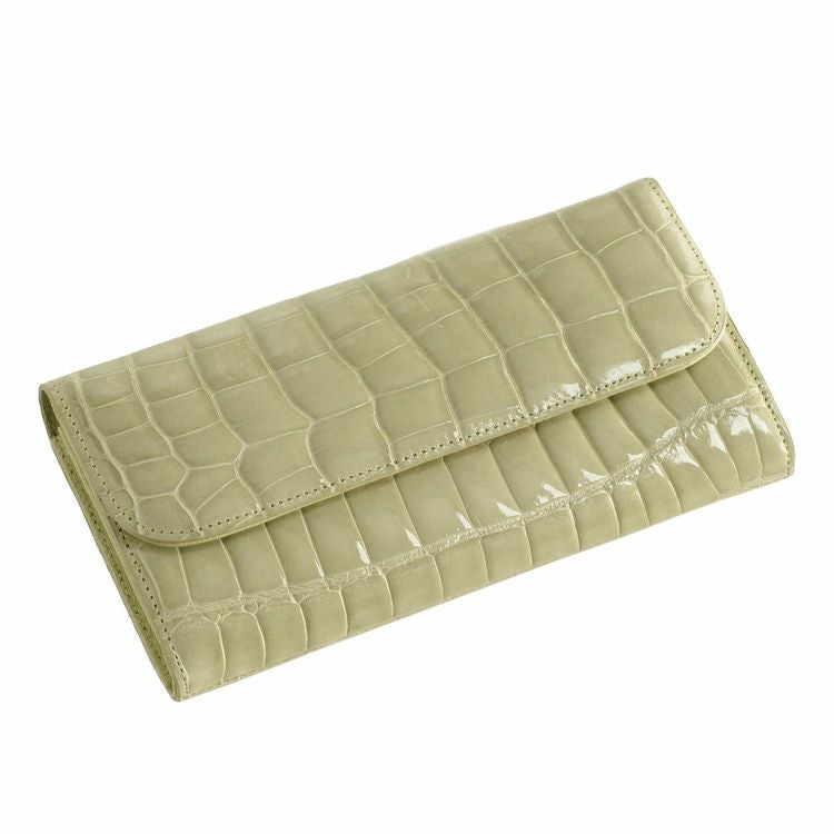 天然皮革 エキゾチックレザー ナイル クロコダイル 長財布 シャイニング加工 かぶせ ヘンローン レディース かぶせ長財布 ワニ 本革 ナイルクロコダイル 婦人 財布 誕生日ワニ革 フラップ 母 プレゼント ギフト 春財布 ギフト
