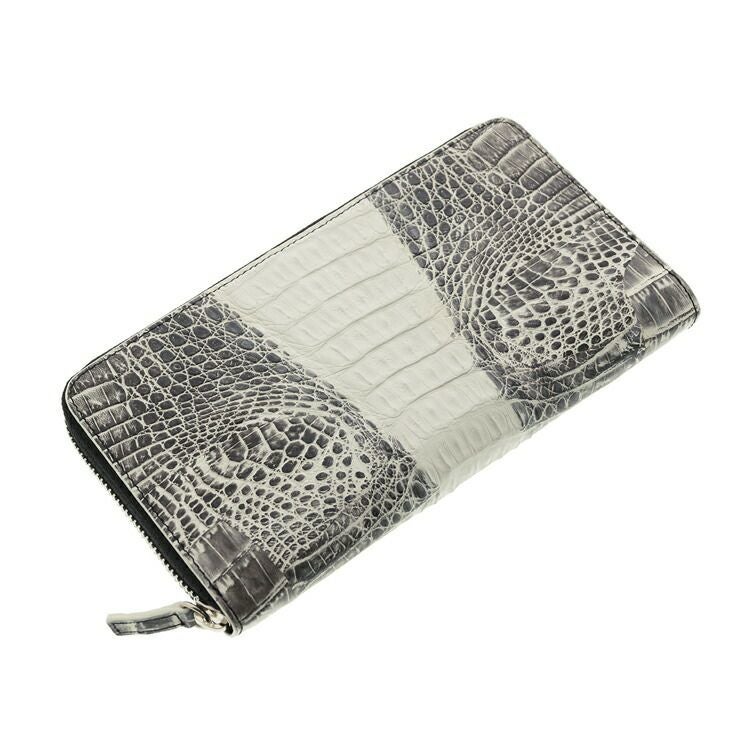 隆起した革が迫力のある表情の鰐革、カイマンを使用した長財布。