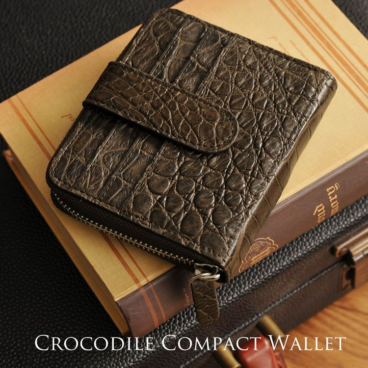 クロコダイルの革で仕立てたラウンドファスナー式の折り財布です。