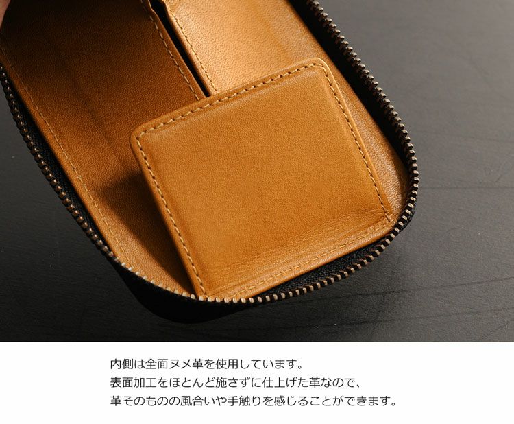 内側は全面ヌメ革を使用し、革の風合いを楽しめる仕上がりになっています。