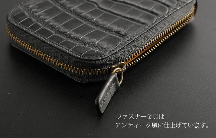 クロコダイル コインケース IC カードケース付き マット加工 ラウンドファスナー レディース ブラック 4FA