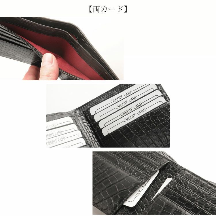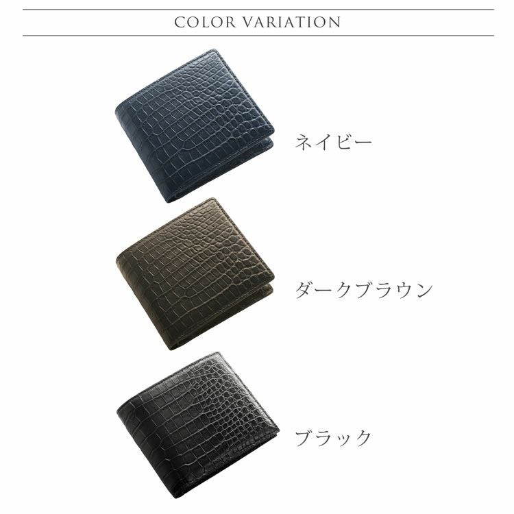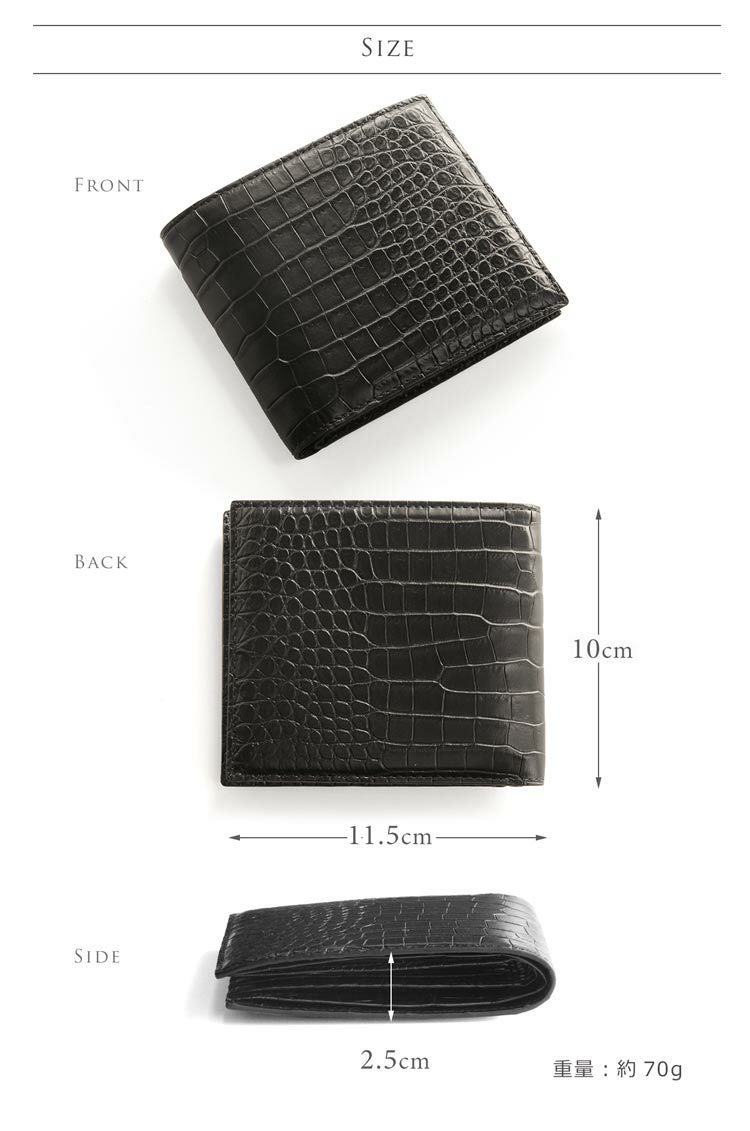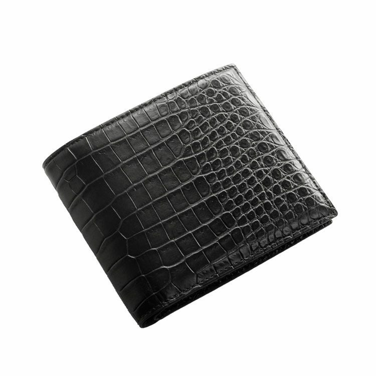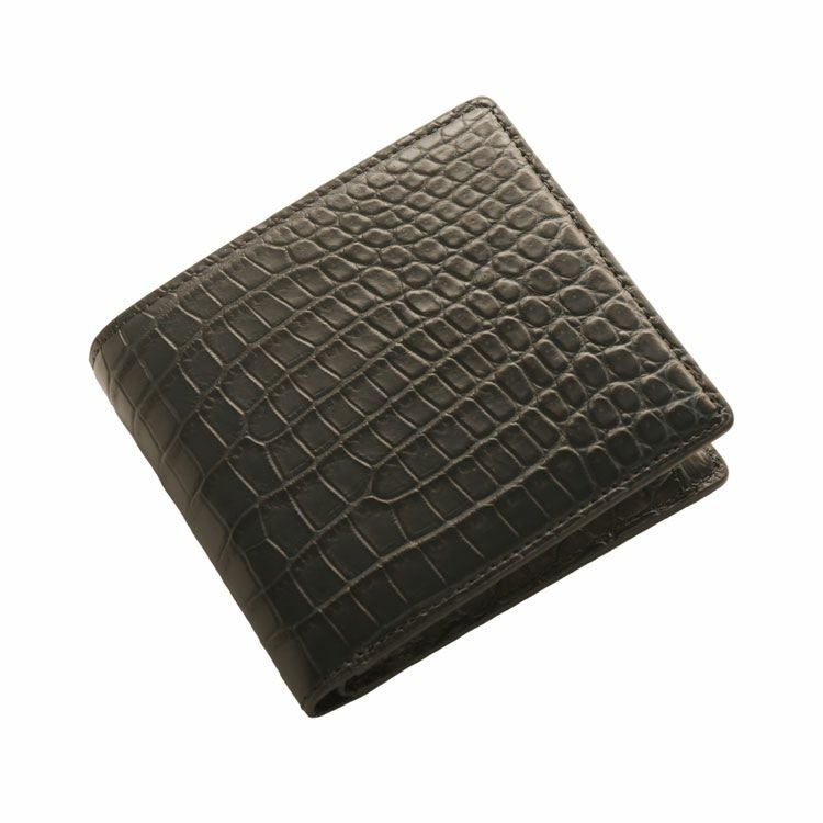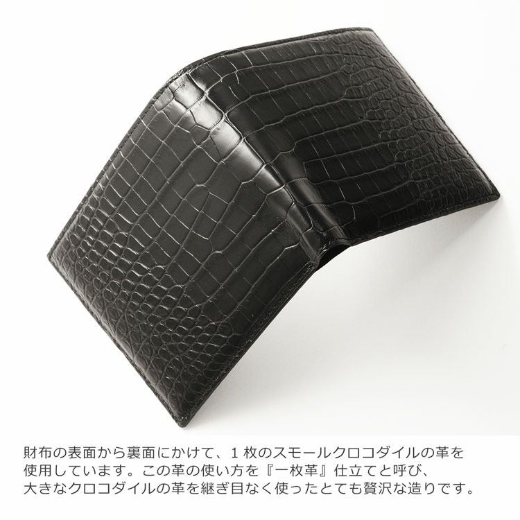 | 商品名:スモール クロコダイル 折り財布 マット 加工 センター取り 一枚革 無双 横幅11.5cm メンズ 保証書 付き |