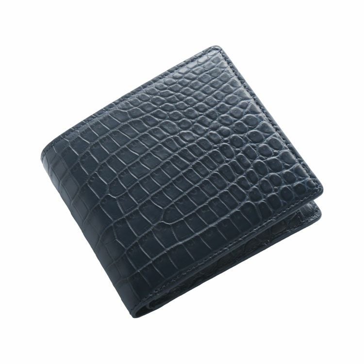 スモールクロコダイルで仕立てた二つ折り財布です。