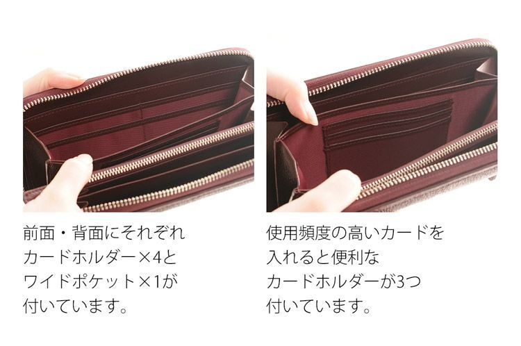 大きく4つの紙幣入れに分かれ、大きくしっかりと開く使いやすい長財布です。