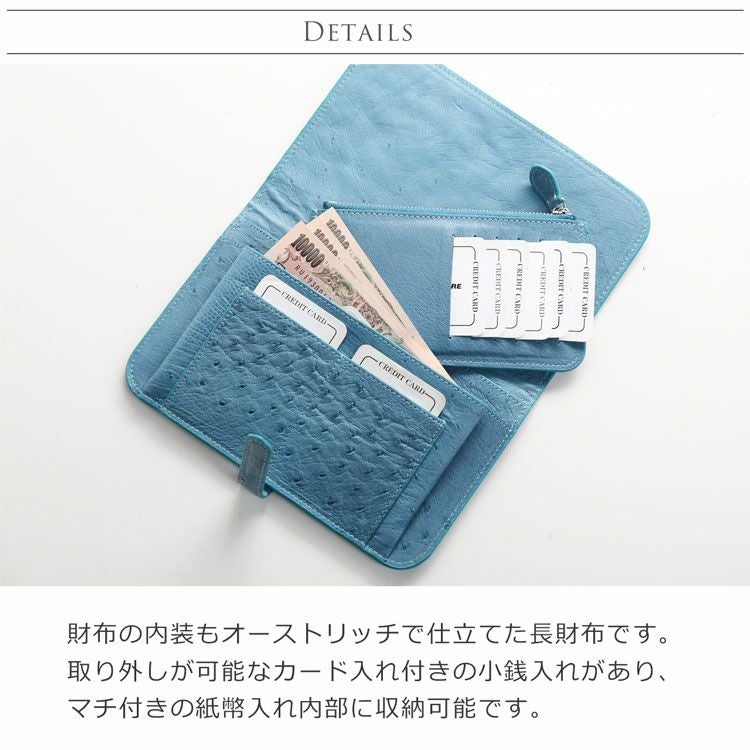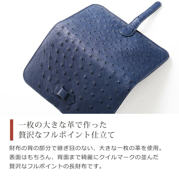 オーストリッチを贅沢に使った少し大きな長財布。