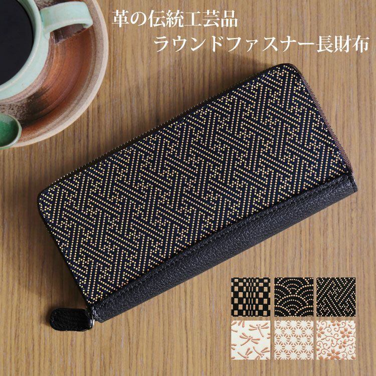 印伝 長財布 ラウンド ファスナー 本革 模様 伝統工芸品
