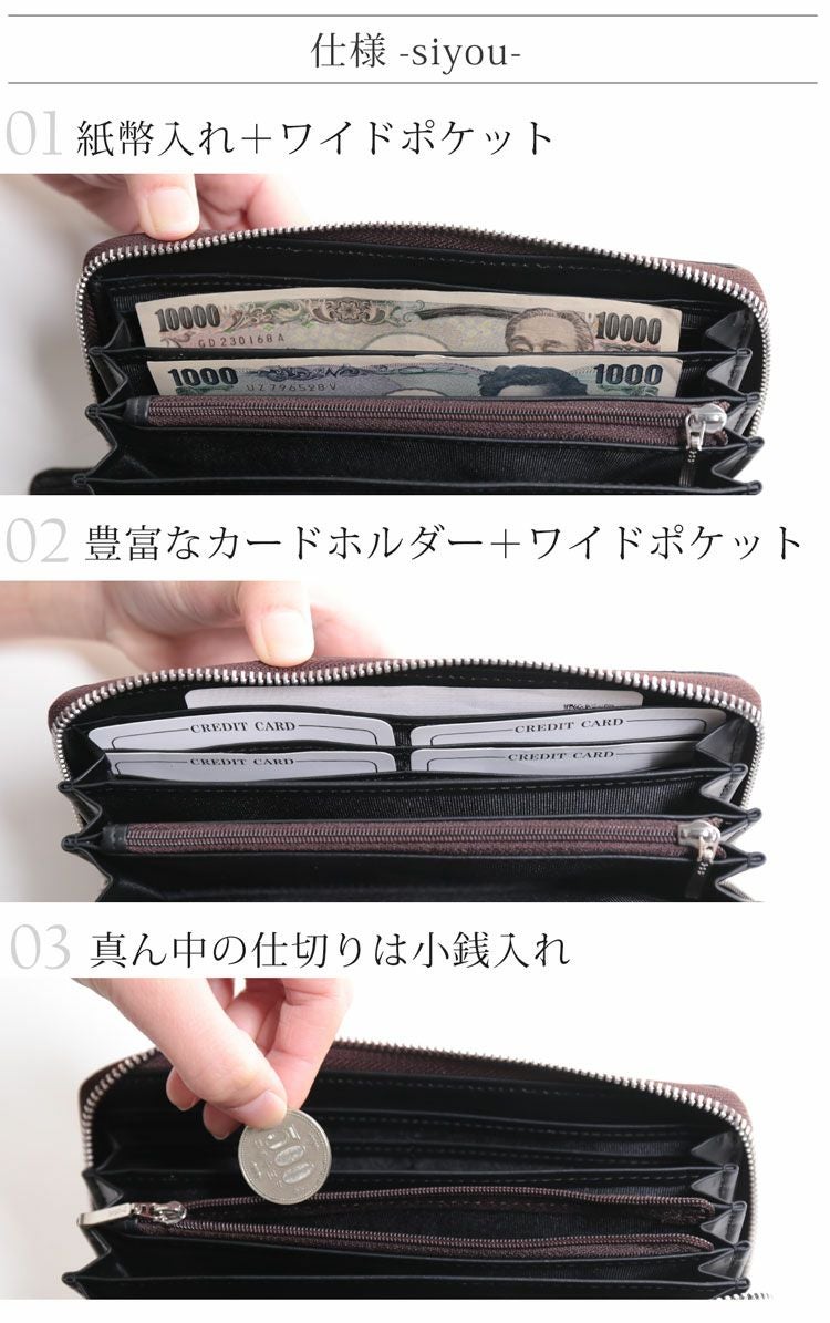 3. 印伝 長財布 日本製 ラウンドファスナー 本革 メンズ(No.06001572-mens-1) 4FA