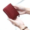ラウンドファスナーで大きく開き、使いやすいコンパクト財布。