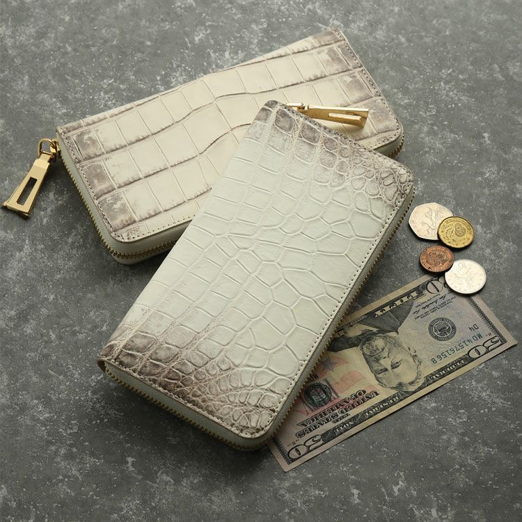 ※キーワード:ヒマラヤ クロコダイル ラウンド 長財布 白 ホワイト 鰐 鰐革 本革 わに 財布 ラウンドファスナー ゴールドファスナー 高級