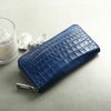 ナイルクロコダイルに本藍染を施した美しいブルーの日本製長財布。