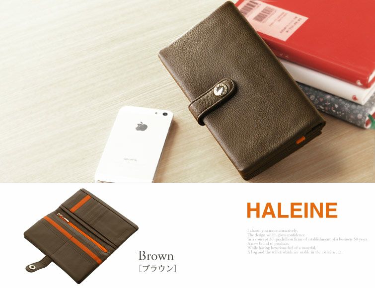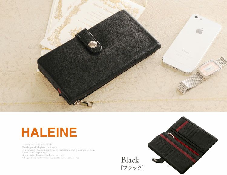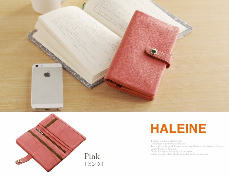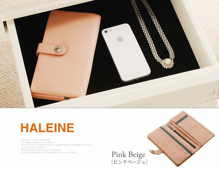 商品名:HALEINE [アレンヌ] スマホ財布 牛革 長財布 ナチュラル シュリンク レザー バイカラー 多機能 / レディース