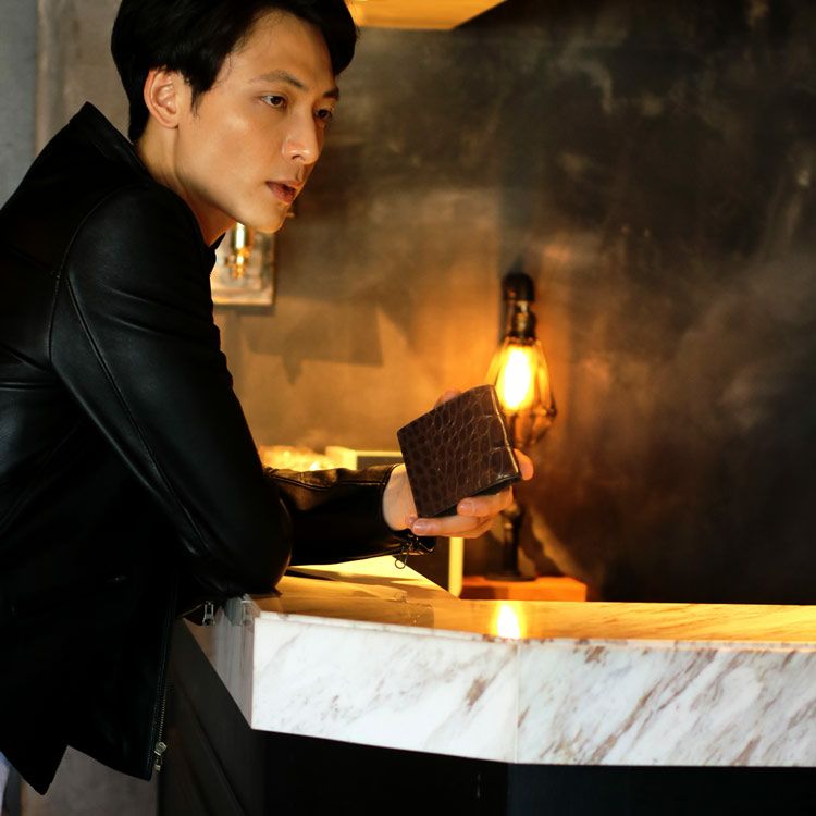 クロコダイルの型押しが、男性の手元に高級感をプラスします。