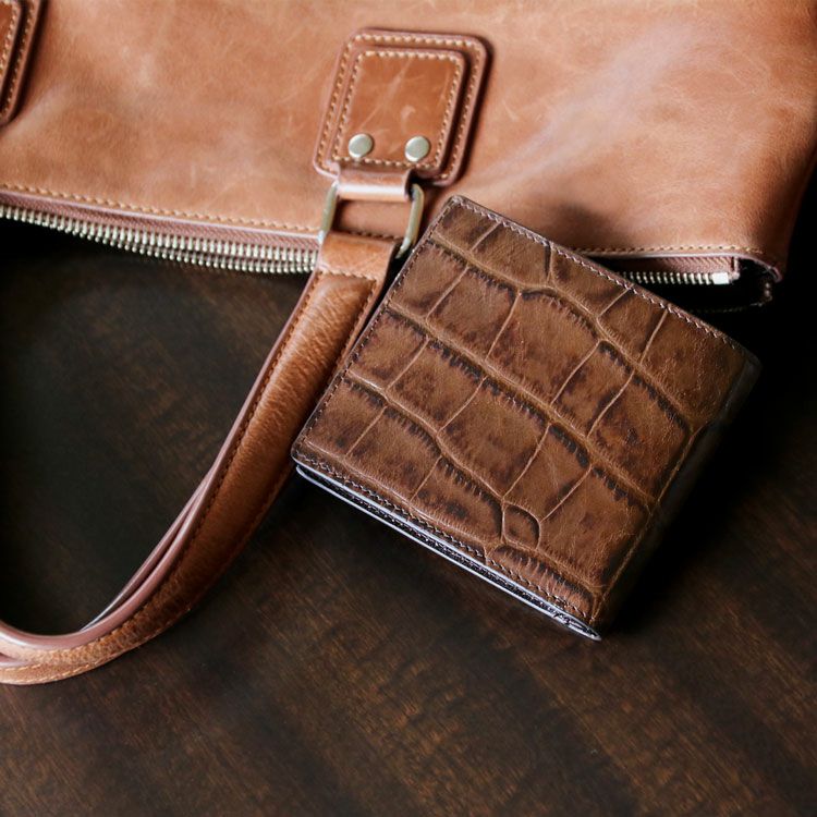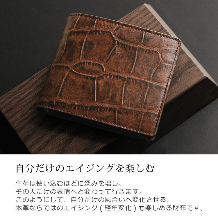 | 商品名:牛革 クロコダイル 型押し 折り財布 両カード入れ |