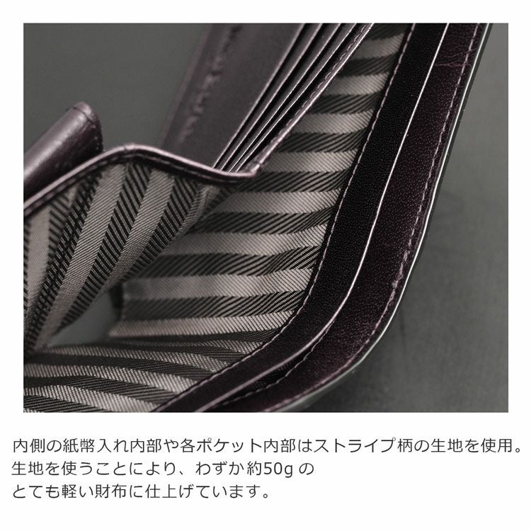 紙幣入れ内部や各ポケットの内部は生地を使用し、財布の重量を軽く仕上げています。