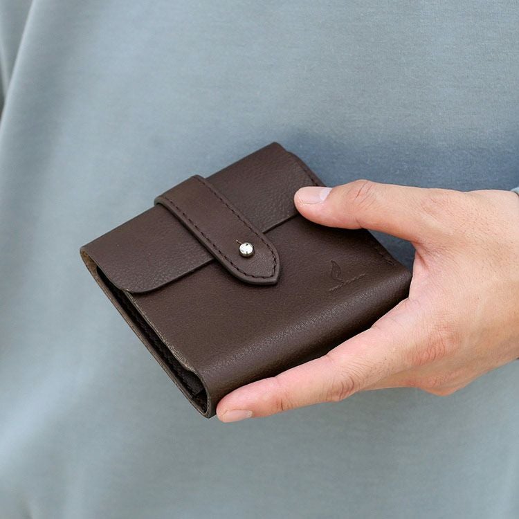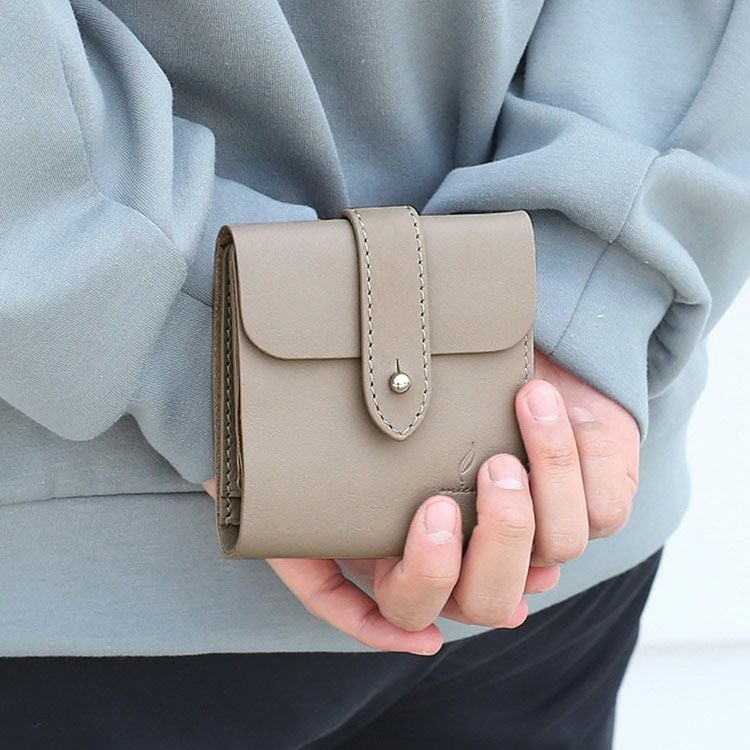 手軽に使える革製品を提案するmienoから、 素材にこだわる大人のための新シリーズ登場。 使っていく人のセンスを格上げしてくれる nova(ノヴァ)レザー折り財布をお楽しみください。 本革ならではの温もりのある風合い。 味のある表情で大人っぽい雰囲気を プラスしてくれます。 くったり柔らかな革が手に馴染んで心地いい。 革の素朴な風合いを楽しめる シンプルデザインの折り財布。 お財布を開くと左側にカードホルダーが3つ、 右側にはポケットが1つと、小銭入れがあります。 小銭入れはスナップボタンで開閉し、 マチ付きなので中身の出し入れもしやすいです。 柔らかな革なので紙幣入れが がばっと大きく開きます。 中の確認がしやすく出し入れも しやすいのが嬉しいポイントです。 カードホルダーの下にチケット類を 挟んでおけるスペースがあります。 切符などの小さなものはもちろん、 大きめのクーポンや領収書など、 一時保管するのに便利なスペースです。 くたっとした柔らかな質感が特徴のノヴァレザー。 ナチュラルテイストな風合いで上品な印象。 長く愛用したくなる味わいのある革。 表面は一枚のノヴァレザーで仕立てています。 革の質感を存分に楽しめるシンプルな作りです。