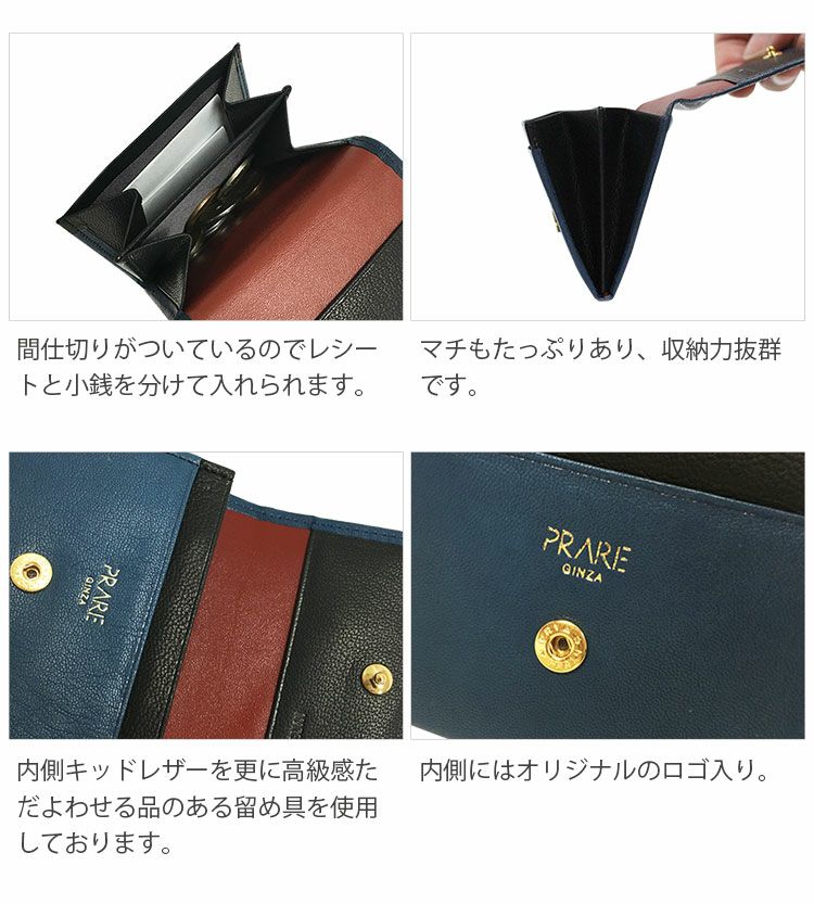 PRAIRIE GINZA/プレリー 本革 ミニ 財布 キッドレザー かぶせ 小銭入れ 日本製/レディース 小銭入れ 軽量 バイカラー プレリー 婦人財布フラップ プレゼント ギフト 春財布 ギフト