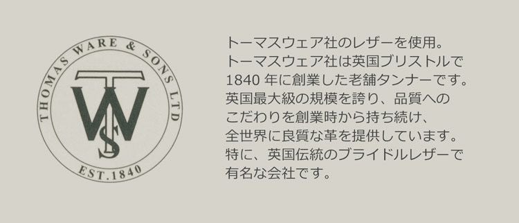 英国最大級の規模を誇る老舗タンナー、トーマスウェア社のブライドルレザーを使用。