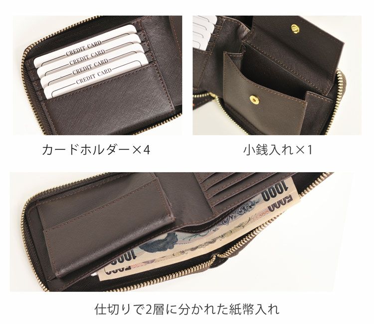 小銭入れ×1 紙幣入れ×2 カードホルダー×4 ポケット×1 |