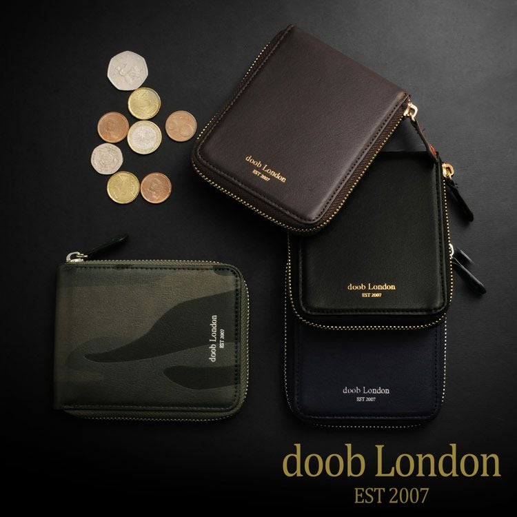 二つ折り 財布 メンズ ラウンドファスナー doob London ドゥーブロンドン ゴート ゴートレザー (09000071r) 4FC