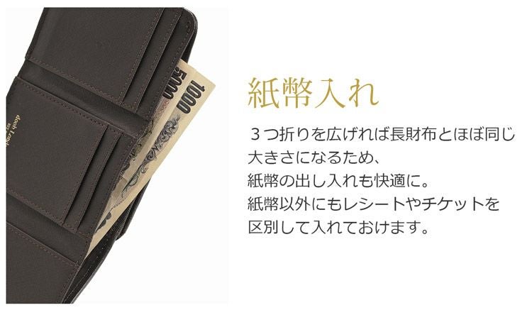荷物を少なくしたい時に便利なサイズ感の3つ折財布です。