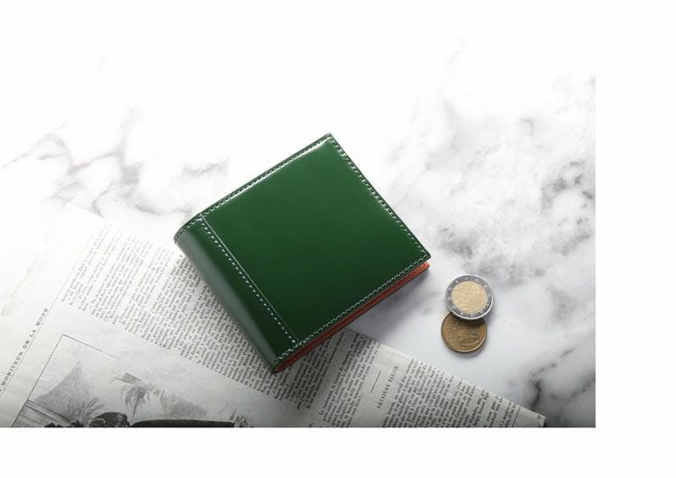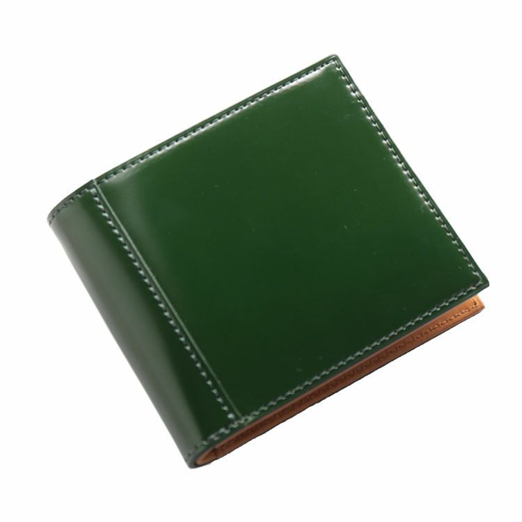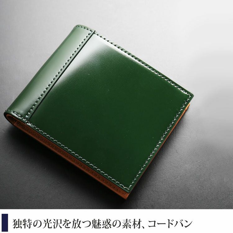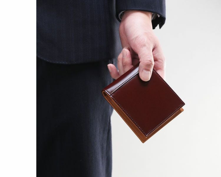 重厚なつくりで品格を上げるコードバン2つ折り財布。