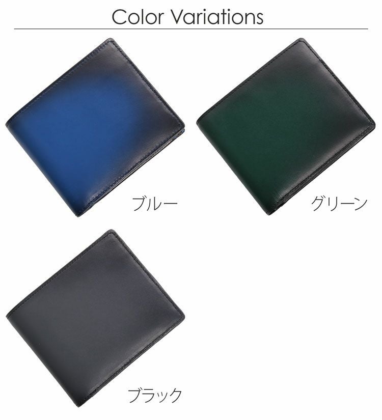 PRAIRIE プレリー 牛革 グラデーション 二つ折り 財布 折り財布 メンズ 日本製 本革 レザー 折り財布 小銭入れ付き ブルー グリーン ブラック シャドー加工 シンプル お洒落 オシャレ 上質 プレゼント ギフト