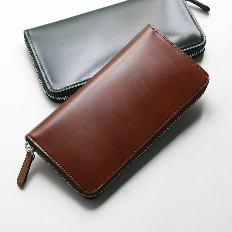 無駄な装飾の無いシンプルなデザインで、コードバンの素材感が生きた長財布です。