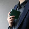 無駄な装飾の無いシンプルなデザインで、コードバンの素材感が生きた財布です。
