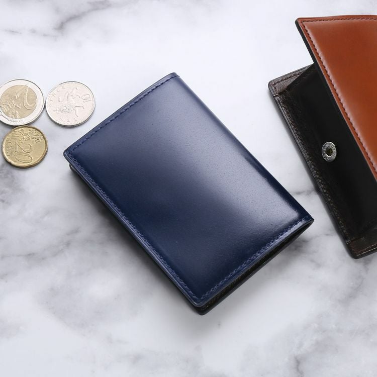 『皮革のダイヤモンド』と称される、コードバンを使用したボックス型小銭入れ。