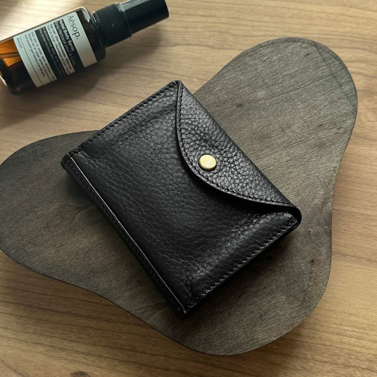 芯材などを使わず必要最低限な作りで実現したシンプルなミニ財布。