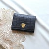 財布 レディース 二つ折り財布 ミディアム財布 レザー クロコ 型押し 牛革 本革 かぶせ 小銭入れ GOLD PFEIL ブランド 折り財布 ウォレット プレゼント ギフト