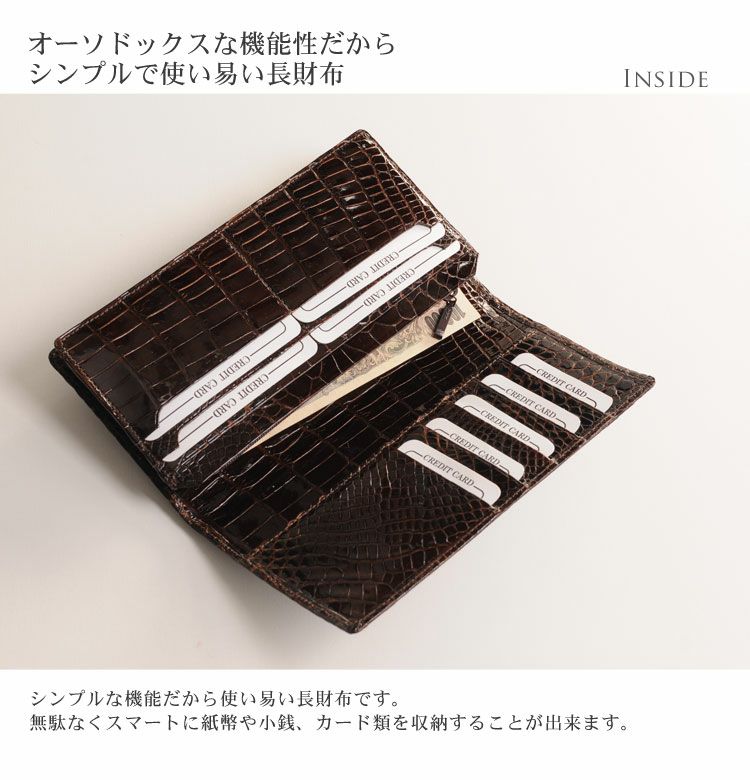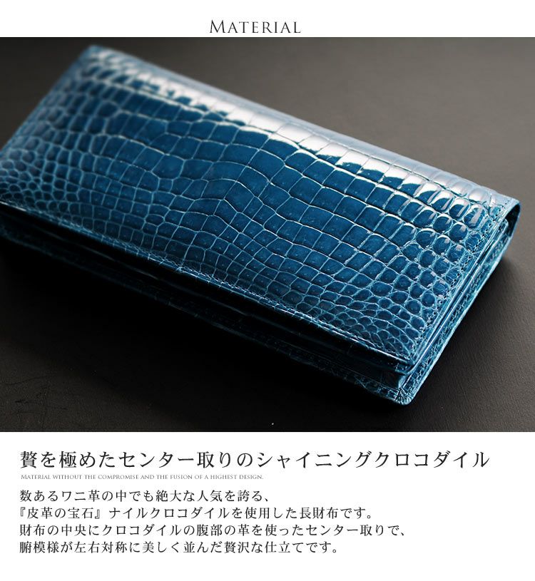 | 商品名:クロコダイル 長財布 レディース 無双 シャイニング 加工 センター取り 一枚革 日本製 束入れ |
