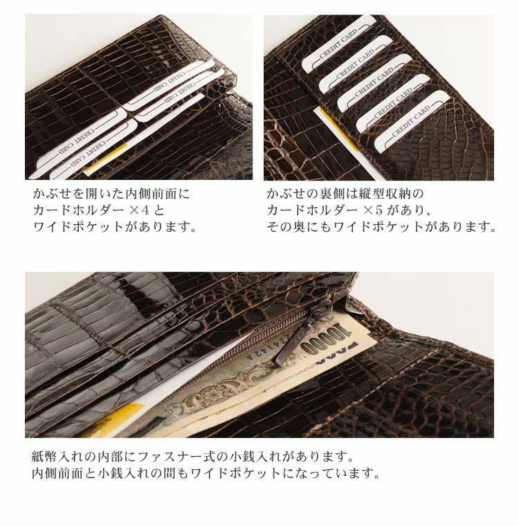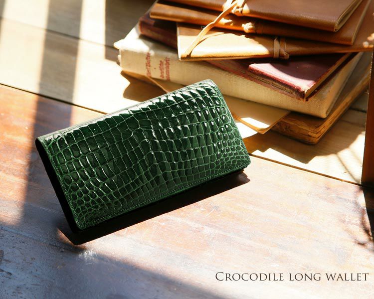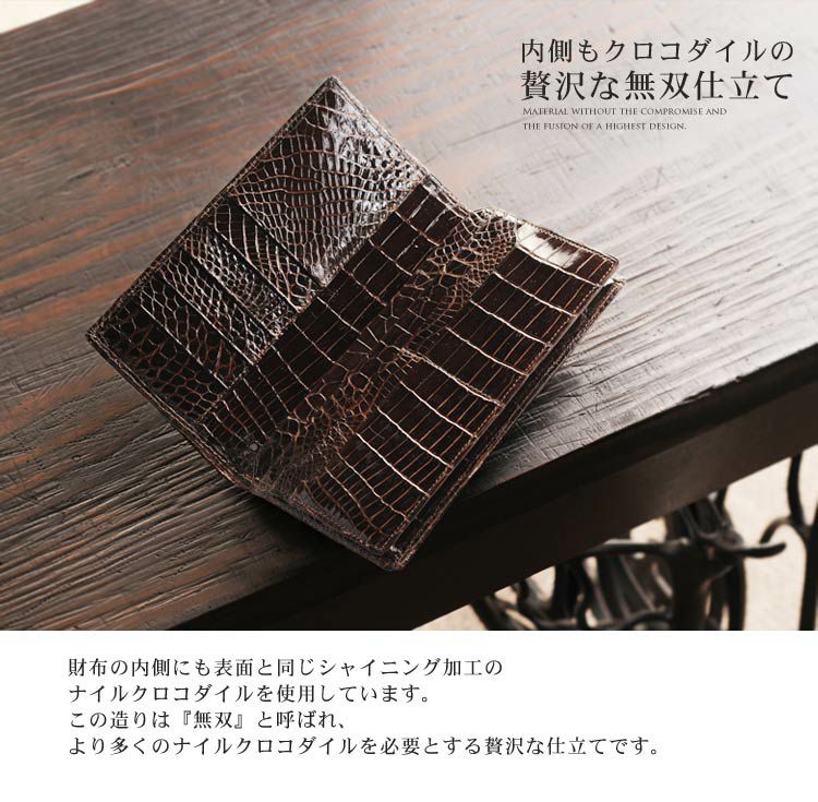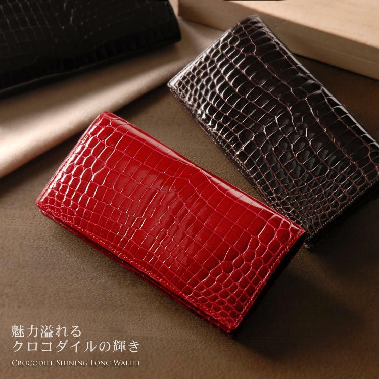 クロコダイル 長財布 レディース 無双 シャイニング 加工 センター取り 一枚革 日本製