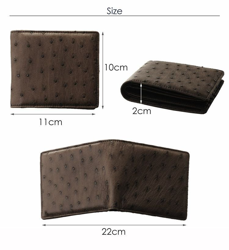 天然皮革 エキゾチックレザー フルポイント オーストリッチ 薄い 2つ折り財布 小銭入れ無し 無双仕立て 小銭入れなし メンズ 財布 メンズ財布 革 誕生日 父 プレゼント ギフト