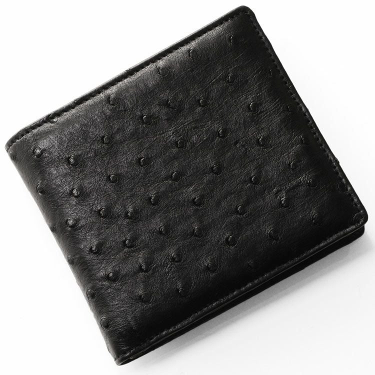 天然皮革 エキゾチックレザー フルポイント オーストリッチ 2つ折り財布 小銭入れ無し 薄い レディース 無双仕立て 一枚革 カード入れ 札入れ 折り財布 折財布 レザー 本革 革 シンプル 高級 母 女性 プレゼント ギフト