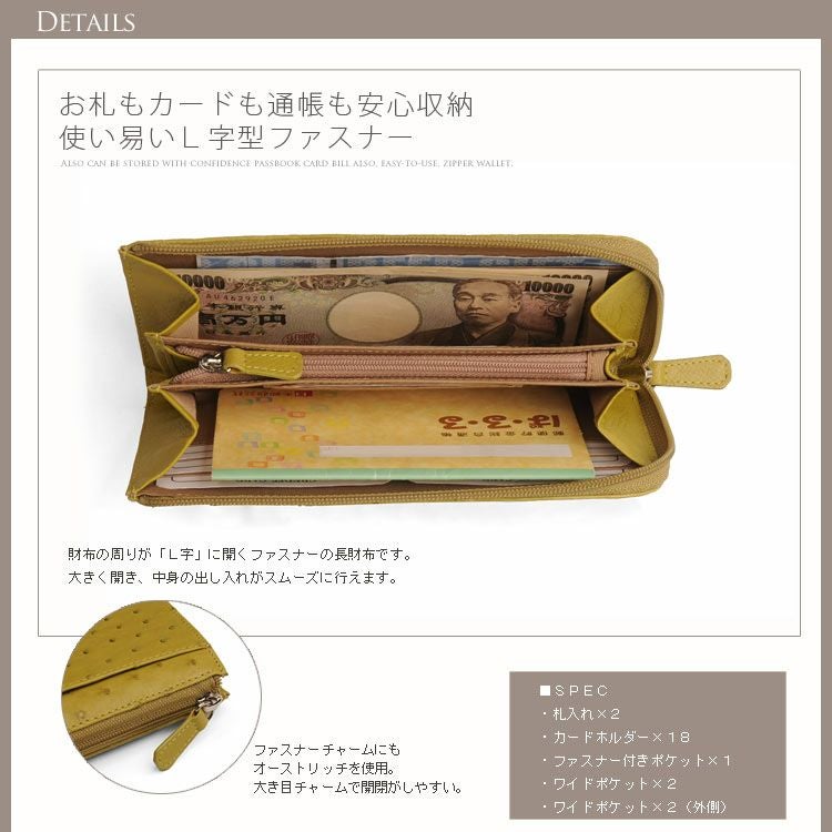 オーストリッチを贅沢にフルポイントで使用した長財布。
