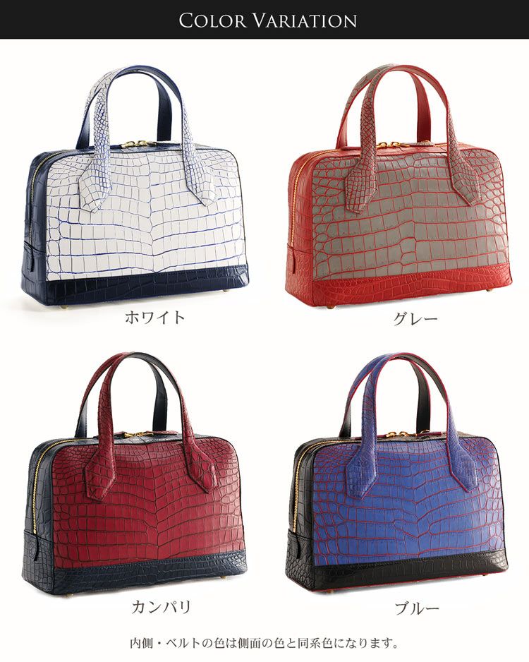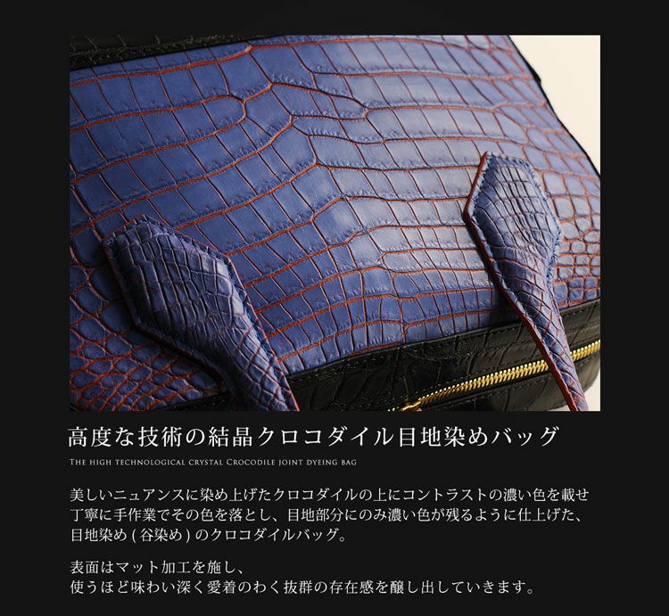 | 商品名:目地染め クロコダイル ハンドバッグ 2WAY マット加工 / ヘンローン社製原皮使用 |