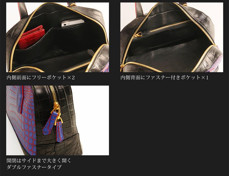 | 素材 | 表側:クロコダイル(マット加工) 内装:羊革、一部クロコダイル |