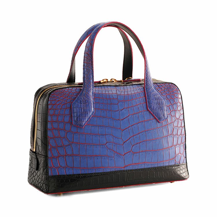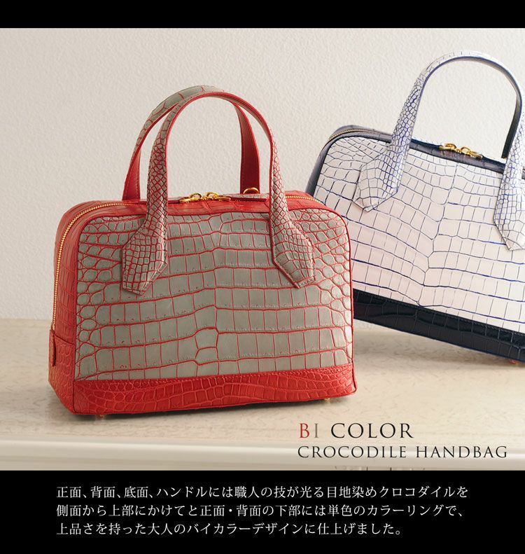 職人の技が光る目地染めクロコダイルと単色のカラーリングの上品なバイカラーデザイン。