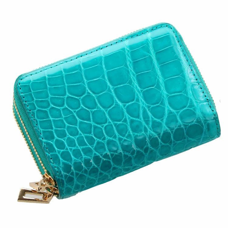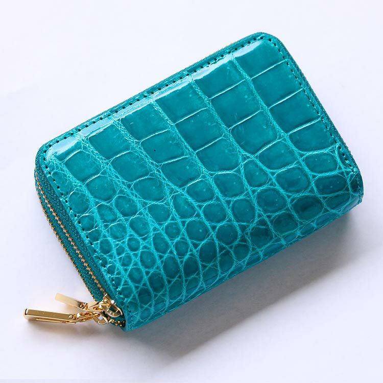 天然皮革 エキゾチックレザー クロコダイル ミニ財布 レディース Wファスナー キャッシュレス ラウンドファスナー シャイニング 加工 全17色 ゴールド金具 本革 小さい財布 女性 プレゼント ギフト