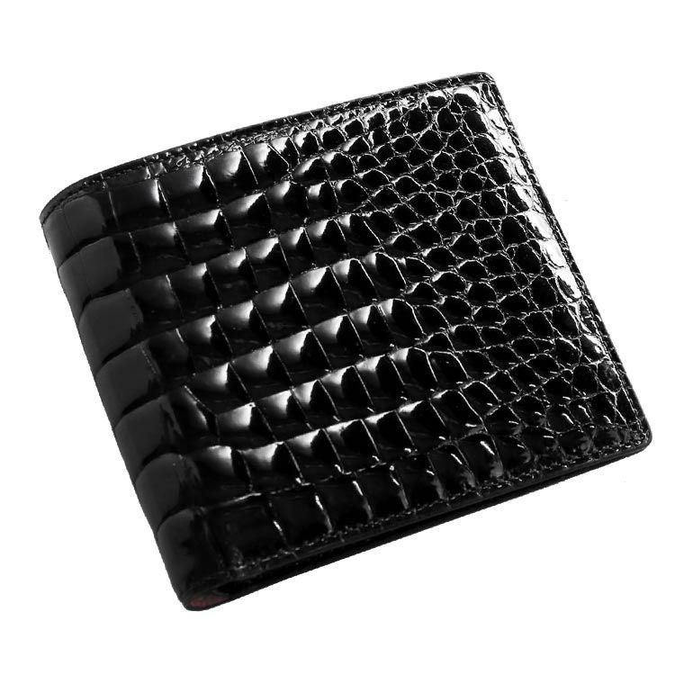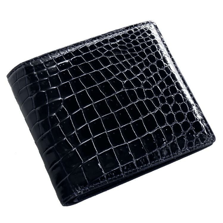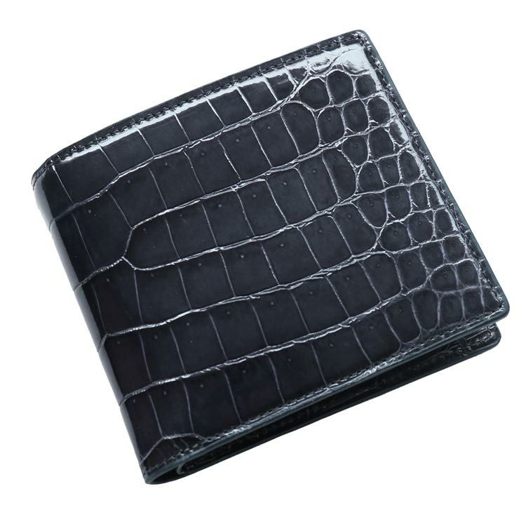 スモールクロコダイルで仕立てた二つ折り財布です。