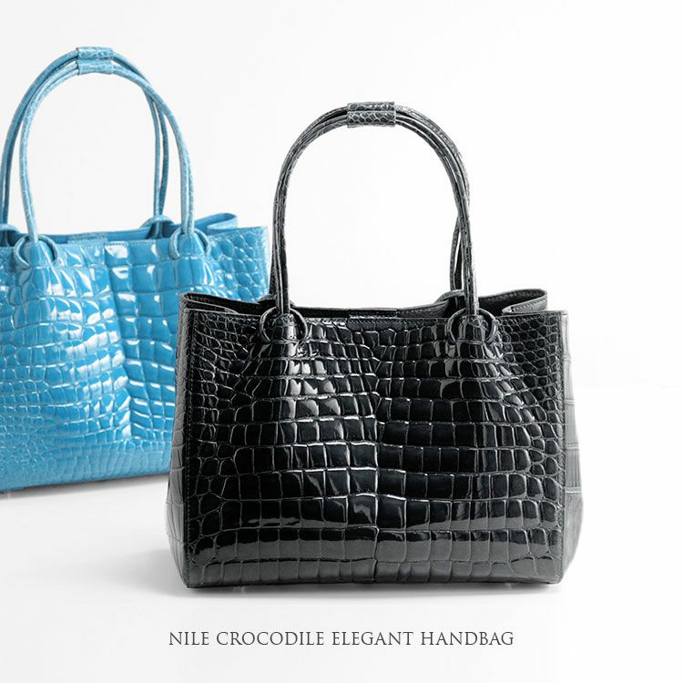 ナイルクロコダイルが美しく輝くエレガントなバッグ。