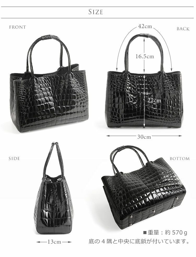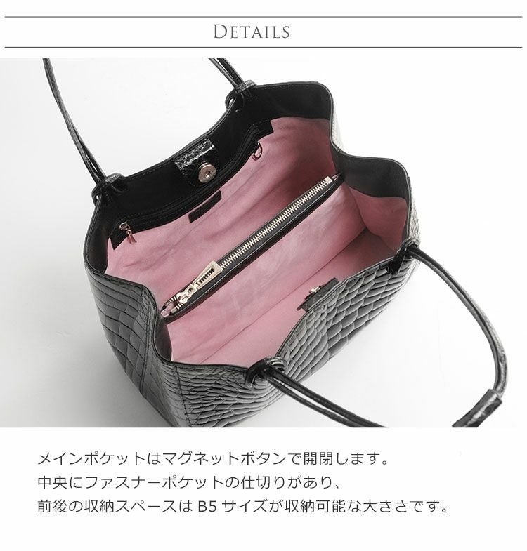 クロコダイル ハンドバッグ レディース シャイニング 加工 B5 サイズ 対応 『クロコダイル保証書付き』 4FA