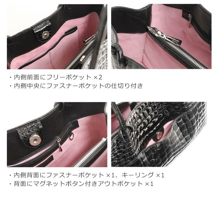 商品名:クロコダイル ハンドバッグ レディース シャイニング 加工 B5 サイズ 対応 ヘンローン 全5色