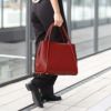 コーディネートのアクセントに抜群の深い赤色のバッグ