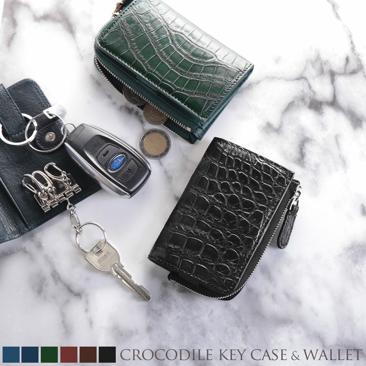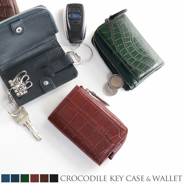 天然皮革 エキゾチックレザー クロコダイル キーケース メンズ コインケース カード入れ 付き マット加工 スマートキー ミニ財布 キーホルダー 革 本革 車 バイク 全6色 プレゼント