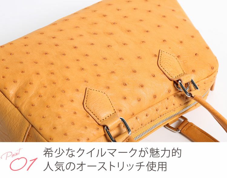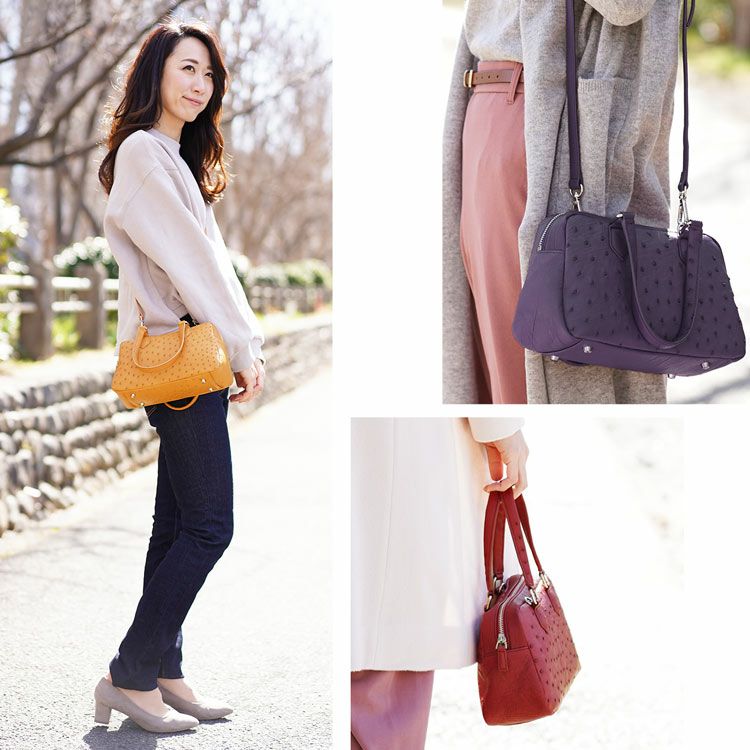 とても柔らかく質が良いお品です。ストラップは牛革ですが、ハンドルも全体がオーストリッチで出来ていて気に入っています。大きさも丁度よかったし、幅があるので沢山入ります。良い買い物をしました。手入れをして長く使います。どうもありがとうございました。